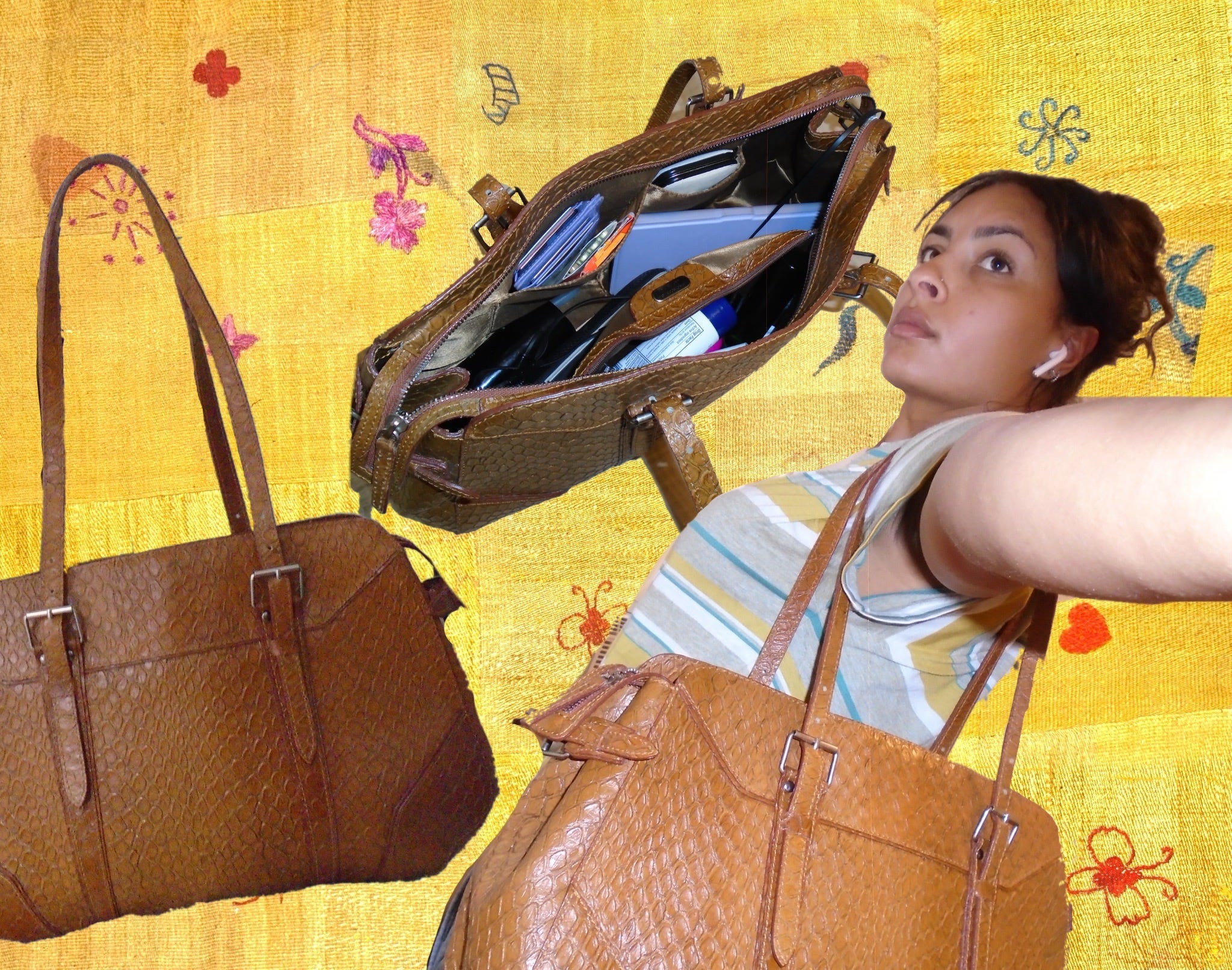 This bag is pretty different from the ones I’ve used in the past, but I love its vintage aesthetic. And while it’s brown—a color that can sometimes be tricky—it surprisingly works with the majority of my work outfits. It strikes a nice balance between professional and personal, and I appreciate how it adds a little character to my overall look.