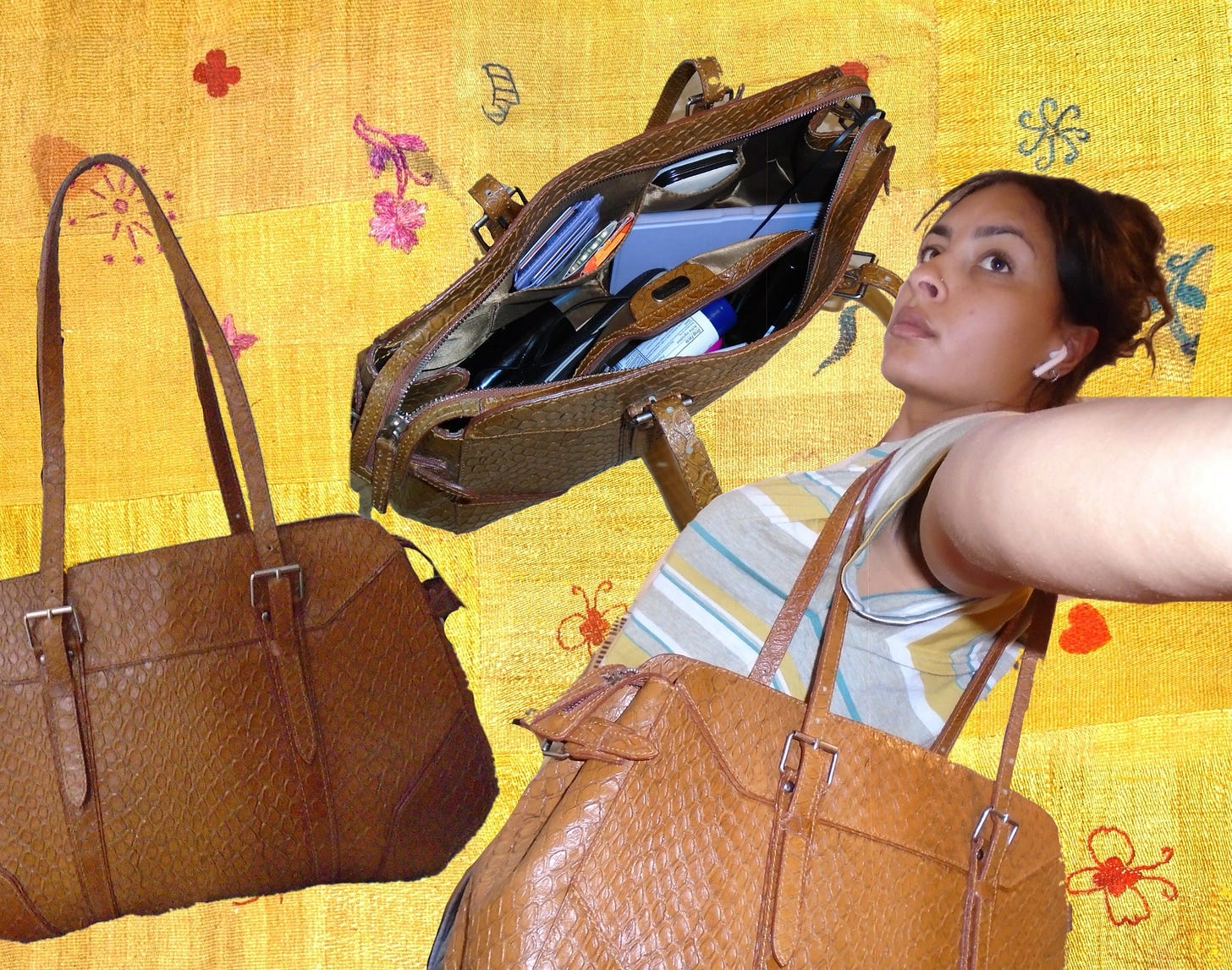 Bag number three was also Anya Hindmarch from TheRealReal. (I love Anya Hindmarch.) This one was black with silver studs—simple but edgy, and it paired effortlessly with every outfit. I loved how slouchy it was; it felt relaxed and cool, not overly corporate. But while it looked great, it wasn’t built to carry a laptop every day. The adjustable studded straps started to stretch and come undone, and eventually, it became more trouble than it was worth. I still mourn that bag. If I could find a way to fix the straps, I’d bring it back in a heartbeat.